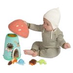 A mushroom-themed fill and spill adventure. This whimsical mushroom is covered in a variety of fabric textures and offers fill and spill play for busy little ones. It comes with four woodland themed characters featuring playful fabrics, weighted bodies and happy expressions – squirrel, turtle, hedgehog and frog. There are three different ways to fill and spill toys from the mushroom housing – front door, back window and out the top. The coral-colored mushroom top is removable. The delightful mushroom features whimsical illustrations and touch and feel textures. Encourages fill and spill play, motor development and cognitive learning.